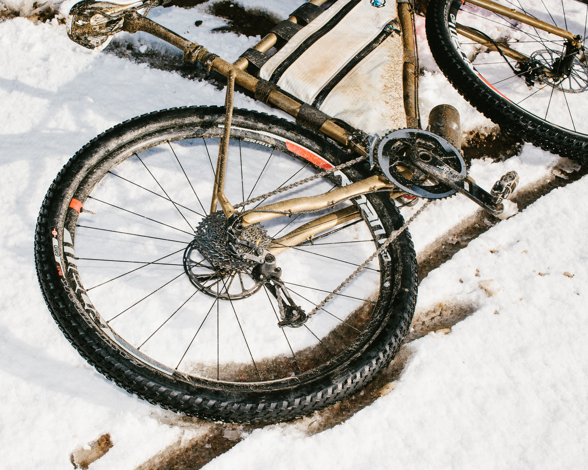 SRAMThe climb up the east side of the White Mountains is steep, beautiful, and claustrophobic. The asphalt rolls over natural water bars and through tight openings cut between rock walls. The weather conditions continue to decline and we are splashed with bursts of frigid mountain rain, but the climb passes quickly and we reach the plateau at the top of the range. To strictly follow the 168 we would descend the west side of the Whites into Big Pine and go back up the 395 to Bishop. That would be the short option, the easy option, the smart option. Alternatively we could ride up through the Bristlecone Pine Forest and descend down Silver Canyon. In terms of length the two routes are almost dead even, but the Bristlecone route would take us up to around 11,000 feet, adding another 3,000 feet or so of climbing. With the precipitation giving no hint of letting up it seemed that the right thing to do was to to gain elevation—get above the storm you know?—while steering clear of any services or shelter.